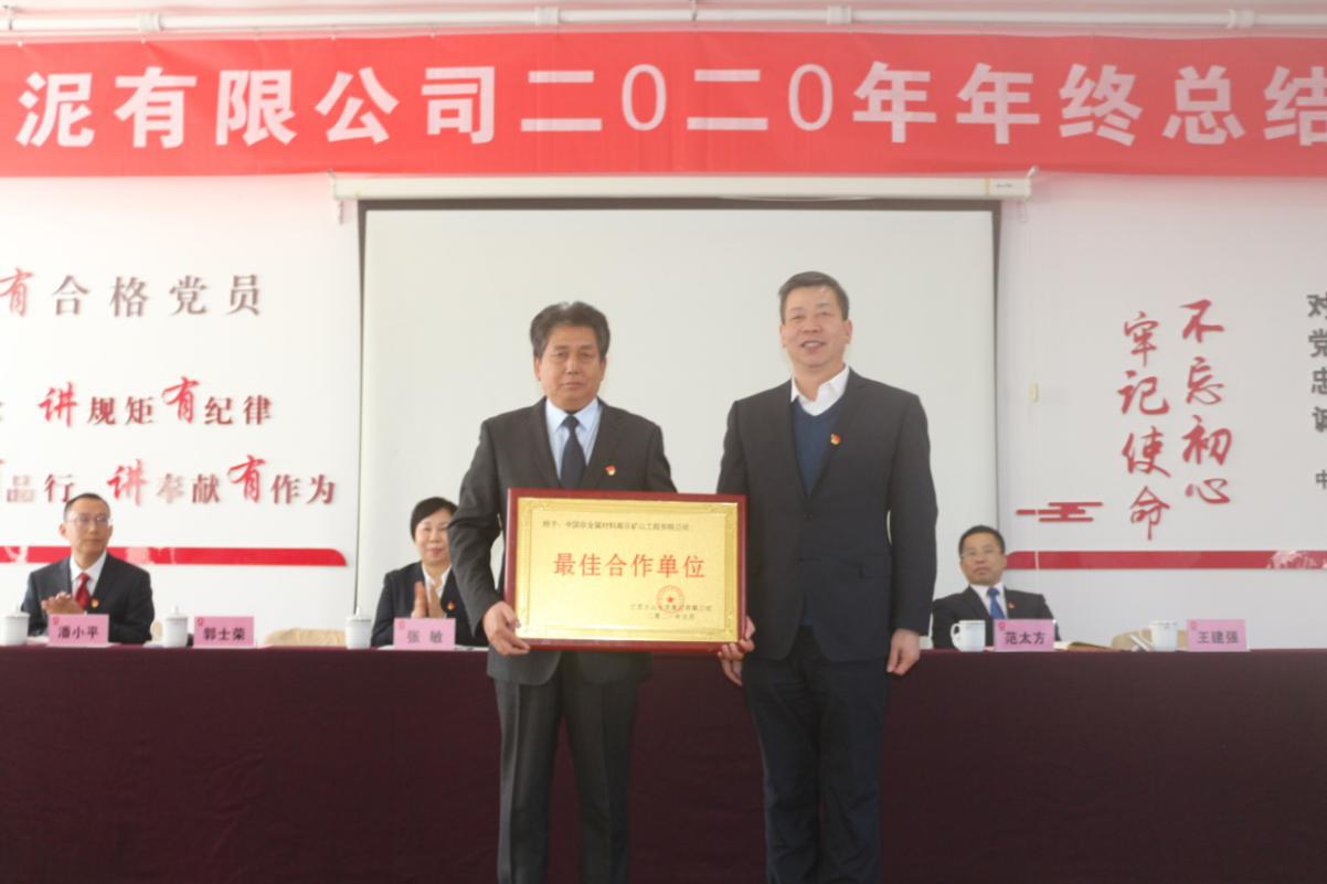 2021年1月8日在溧水天山水泥有限公司2020年度總結(jié)表彰大會(huì)上,溧水分公司受到江蘇天山水泥集團(tuán)表彰,并授予“最佳合作單位”稱號(hào)。